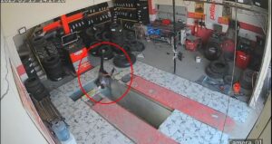 Mardin’in Mazıdağı ilçesinde oto lastik dükkanında çalışan çırak, su bidonu taşıdığı sırada dengesini kaybederek tamir çukuruna düştü. Olay anı güvenlik kamerasına yansıdı.